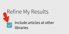 - To ensure complete results, expand your search to include articles from other libraries, using the checkbox near the top of the filters.